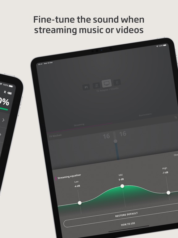 • Handle wireless accessories paired with your hearing aids; control multiple TV Adapters, or devices such as Oticon EduMic or ConnectClip which can be used both for streaming and as remote microphones