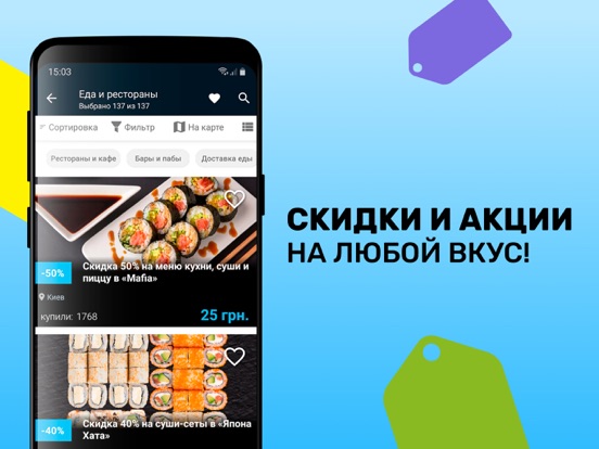 Каждый день в приложении появляется более 100 новых акций и предложений по всей Украине.