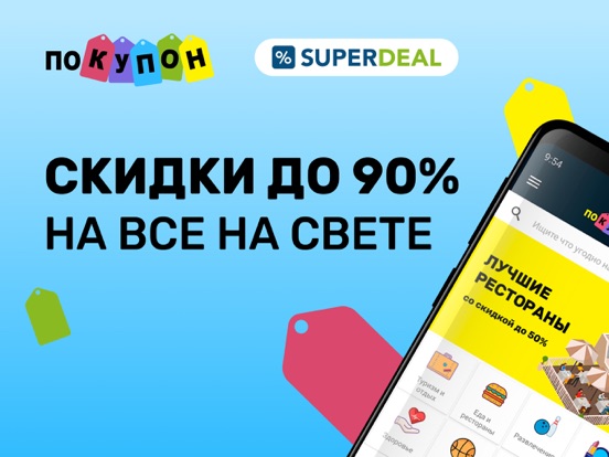 Скидки и акции на услуги и товары – в одном приложении Pokupon & SuperDeal! Отели, туризм, доставка еды, тренажерные залы, рестораны, развлечения и многое другое со скидками до 90%. Простая навигация и интуитивно понятный дизайн приложения сделали его must-have для всех поклонников горячих распродаж.