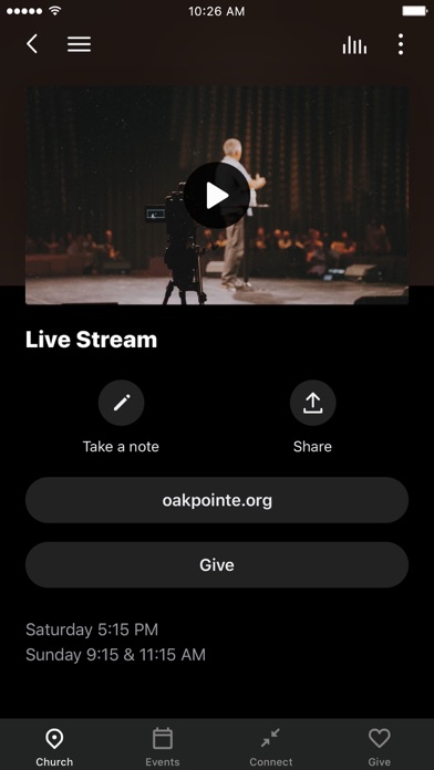The Oak Pointe Church App was developed with the Subsplash App Platform.