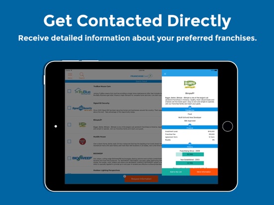 Franchise Cost also tells you how long a franchise has been in business, and how fast it is growing. Plus you can search for similar franchises available in your state, until you find the right one for you. Best of all, we provide a safe, easy and secure way to contact the franchise team directly to learn more about the best franchises for sale. Try this free app today, and start your business ownership journey.