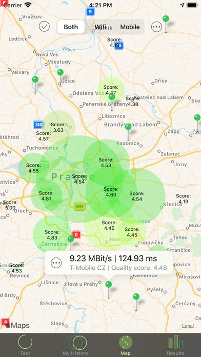 The app will upload information about every single measuring performed by the user to an online database. Users can then download all this data to the in-app map screen where a map of the user’s area Internet quality is shown. The possibility to set up filters based on radio technology or mobile operator in his country is also built in.