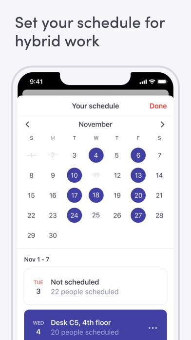 Cut down on the time it takes to coordinate which days you will work on-site with others. See who plans to work on-site each day and let others know when they can find you on-site.