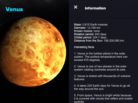 - Comprehensible information about planets