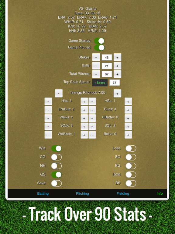 Softball Stats Tracker is the most comprehensive and complete stat keeper in the entire App Store giving you the ability to track all batting, pitching, fielding and catching stats with ease. Created by a softball player for the player!