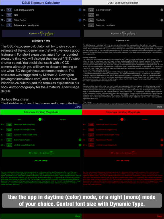 -Full app in red-color (or alternative green, white) night mode - tools switchable to daytime view.