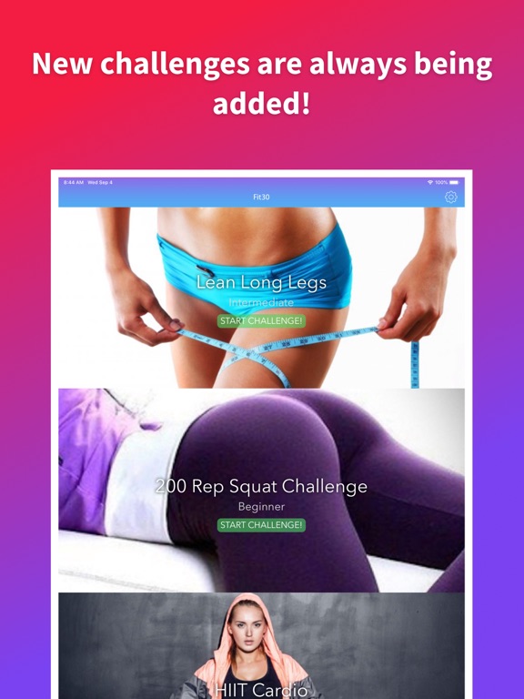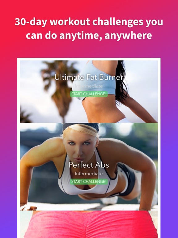 Professionally designed challenges to maximize fat loss and tone ab, butt and leg muscles. As you progress, each challenge slowly increases in intensity and day 30 will test anyone! 7 built-in recovery days!