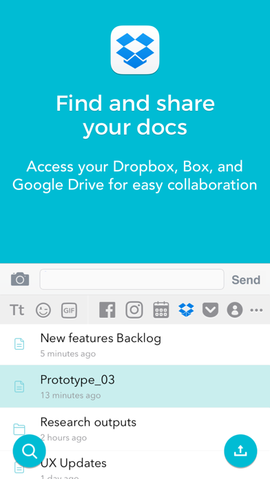 Access your Dropbox, Box, and Google Drive for file sharing without ever leaving the app you are currently in.