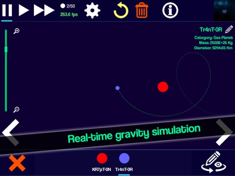 Using Planet Genesis you will be able to visualize in real time your own solar systems with photorealistic graphics, and enjoy watching them orbit, collide and fuse each other in a cosmic dance!