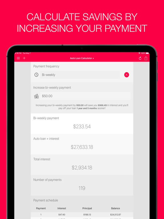 - Weekly, bi-weekly, and monthly auto loan payment frequency options