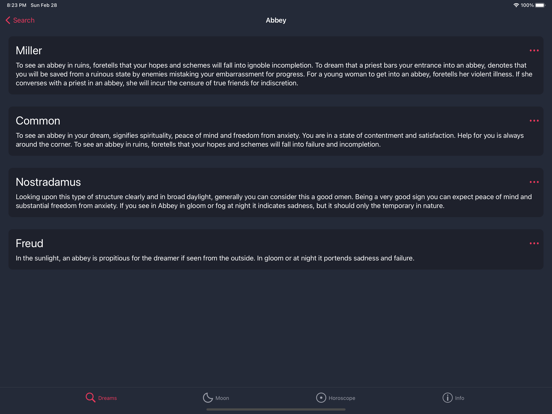 - More than 10,000 dream interpretations without Internet access.