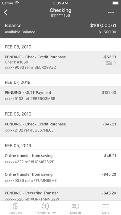 No need to come to the bank to deposit a check, you can scan the check using your mobile device and submit it for deposit into the account of your choice.