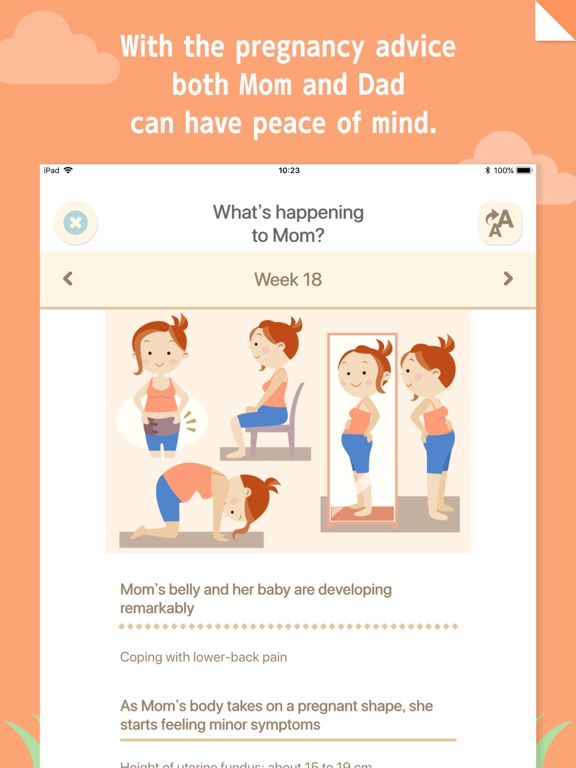 The week-by-week advice in 280days all come with illustrations! Enjoy reading and learning how the baby is growing, how Mommy's physical condition changes and advice on how she could spend her time at each week of her pregnancy.