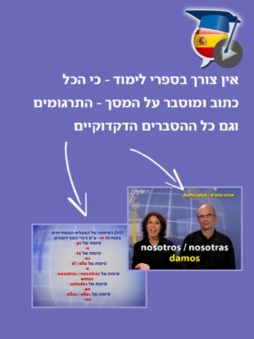 כל מה שעליך לדעת מופיע על המרקע, החל ממידע פשוט ביותר על כללי השפה ועד כתוביות עם התרגום של כל הנאמר והסברים קצרים וברורים בעברית.