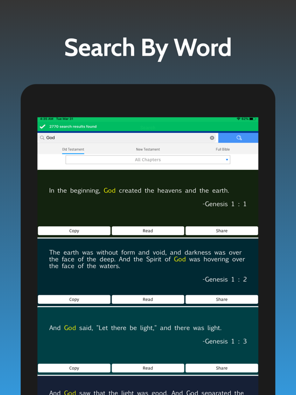 ● Quick Access: By just a few taps you can quickly navigate to any book, chapter and verse.