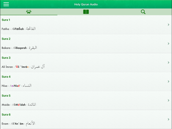 This application gives you the ability to read and listen to all 114 chapters of the Holy Quran on your device.