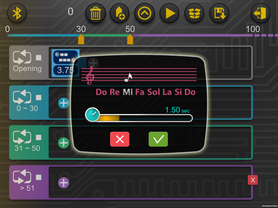 • Different program segments can be set to run upon first run and then when the ultrasound sensor detects objects at different distances from the model.