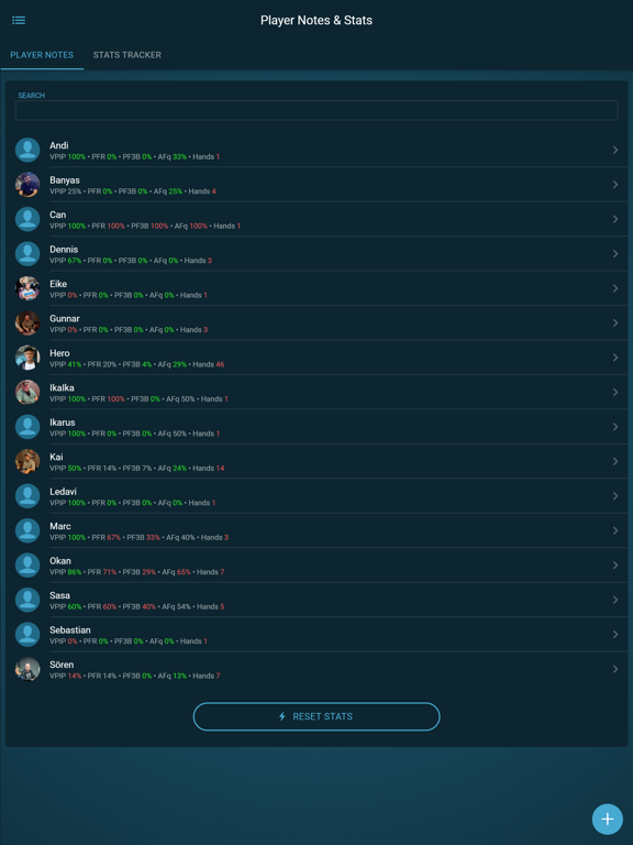 • Track hands to get player statistics like PFR, VPIP, 3BetPF, etc.