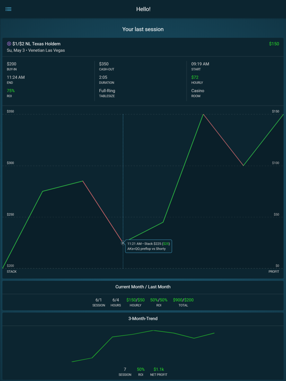 • Track your live sessions and visualize your chip graph and many more statistics.