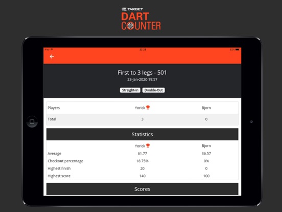 DartCounter is the world’s biggest darts scorer app for keeping track of all your scores. Play x01 games, Cricket, Bob's 27 and several other training games.